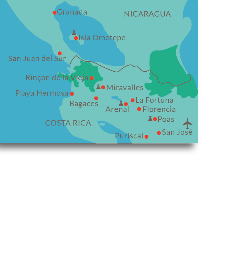 Rivas liegt an der Panamericana, etwa 4 km vom Westufer des Nicaragua-Sees entfernt, zwischen der Grenze zu Costa Rica, bei Peñas Blancas im Süden (35 km) und der Hauptstadt Managua im Norden (100 km). Er fungiert als wichtiger Knotenpunkt zum Küstenort San Juan del Sur am Pazifik. Transfer nach Belen und Radetappe zwischen dem Nicaragua-See über die von Weideland geprägten Höhenzüge zum Pazifik. Unterwegs besuchen wir eine Dorfschule und erfahren mehr über das Zusammenleben in diesem Land, welches ohne Armee auskommt. Auch der Besuch des farbenfrohen Marktes, kurz vor unserer Ankunft im Hotel am Pazifik, gibt uns einen weiteren Einblick in das tägliche Leben der Dorfbewohner. Wir radeln bis zum Hotel in San Juan del Sur, welches direkt an einem der schönsten Pazifikstrände der Region gelegen ist.