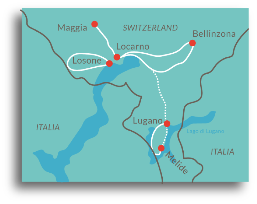 La découverte d’aujourd’hui mène au centre d’Ascona. Vous pouvez y laisser votre vélo et prendre le bateau pour les îles de Brissago. Le jardin botanique abrite environ 1’700 espèces de plantes. De retour à Ascona, l’itinéraire vous conduit du centre ville trépidant sur de petites routes jusqu’aux ramifications de la vallée Centovalli. Ici, vous devez faire face à une courte montée avant de visiter des villages endormis. L’itinéraire vous ramène ensuite à Losone par un chemin facile.