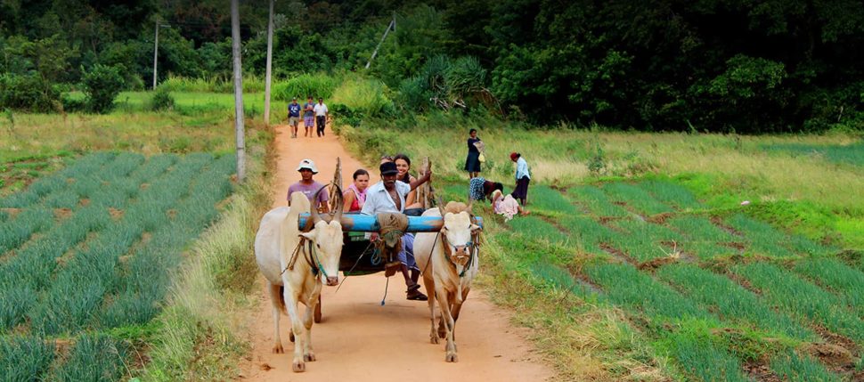 After a short transfer, we cycle into the tropical landscape of Sri Lanka. Depending on the season, the travel fields glow deep green, we discover the first rubber plantations and coconuts are also grown in large plantations. We can experience the farming experience over lunch with a farming family. A warm exchange, thanks to our guides with the family, who are happy to answer our questions and spoil us with regional delicacies. Then we continue by bike on partly unpaved but easy-to-drive paths to the second highlight of our day, the cave temple and the wall paintings of the „Golden Temple of Dambulla“, which has been declared a World Heritage Site by UNESCO. The tour of the Buddhist cave complex is very impressive and ends our cycling day today.